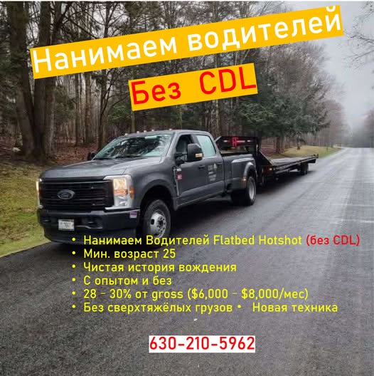 Нанимаем Водителей Flatbed Hotshot (без CDL)